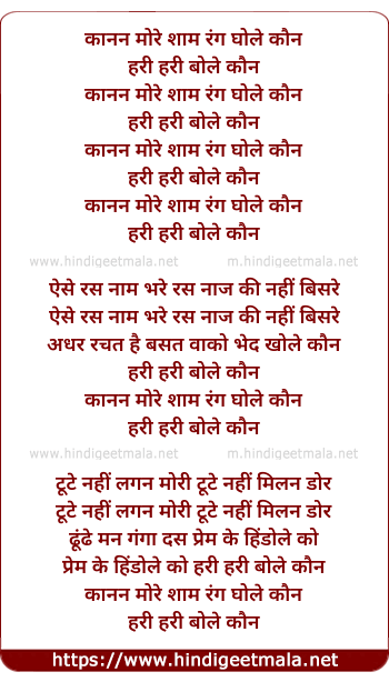 Lyrics of Kanan More Shyam Rang Ghole Kaun - कानन मोरे शाम रंग घोले कौन
