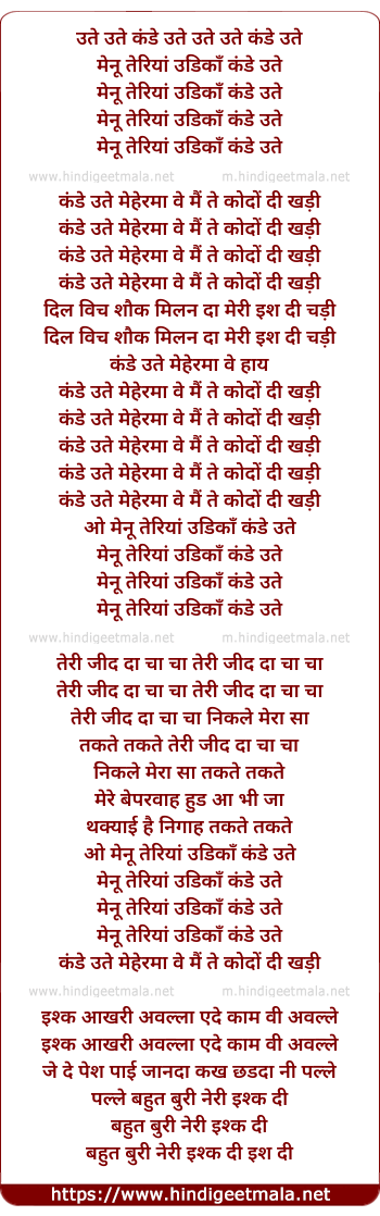 Lyrics of Kanday Utay - उते उते कंडे उते उते उते कंडे उते