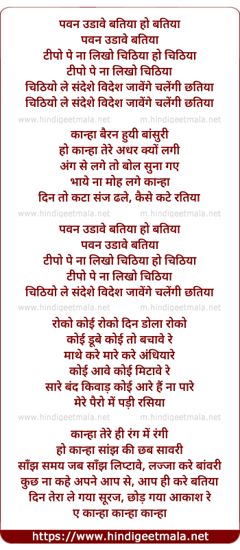 Lyrics of Kanha Bairan Huyi Bansuri - कान्हा बैरन हुयी बांसुरी