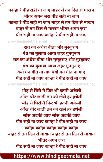 Lyrics of Kanha Re Peed Sahi Na Jaye - कान्हा रे पीड सही ना जाए