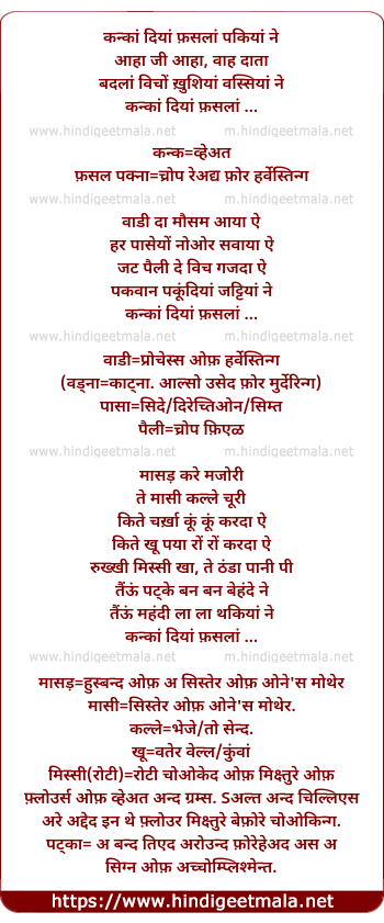 Lyrics of Kankaan Diyaan Fasalaan Pakiyaan Ne - कन्कां दियां फ़सलां पकियां ने