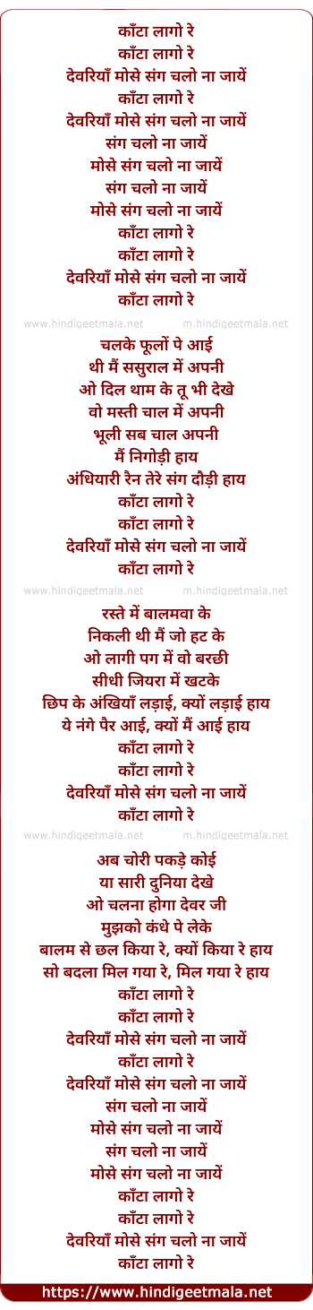 Lyrics of Kanta Laago Re - काँटा लागो रे