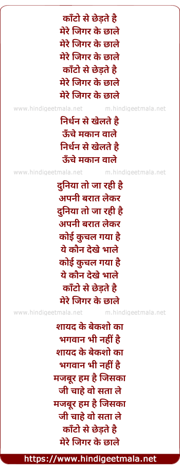 Lyrics of Kanto Se Chhedte Hai Mere Jigar Ke Chale - काँटो से छेड़ते है