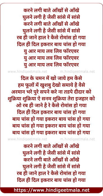 Lyrics of Karne Lagi Baaten Aankhon Se Aankhen - करने लगी बाते आँखों से आँखे