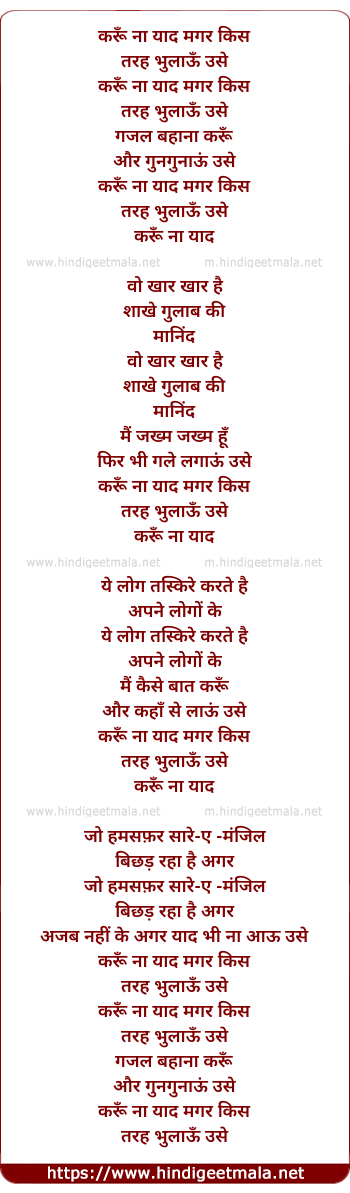 Lyrics of Karu Na Yaad Magar Kis Tarah Bhulau Use - करूँ ना याद मगर किस