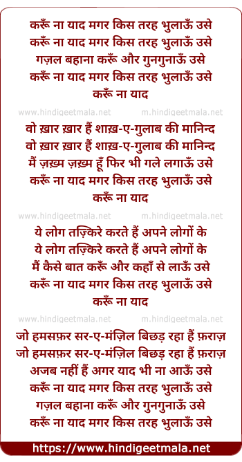 Lyrics of Karun Na Yaad Magar Kis Tarah Bhulaaun Use - करूँ ना याद मगर किस तरह भुलाऊँ उसे