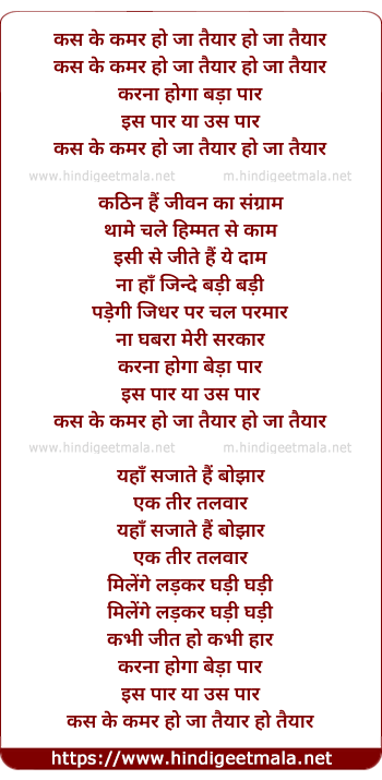 Lyrics of Kas Ke Kamar Ho Ja Tayar - कस के कमर हो जा तैयार