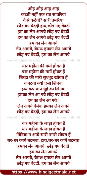 haay,chhod gae bedardee,