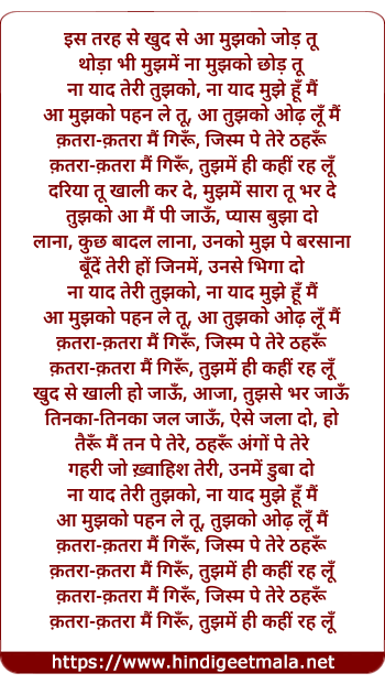 Lyrics of Katra Katra - कतरा कतरा