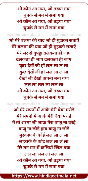 Lyrics of Kaun Aa Gaya - कौन आ गया