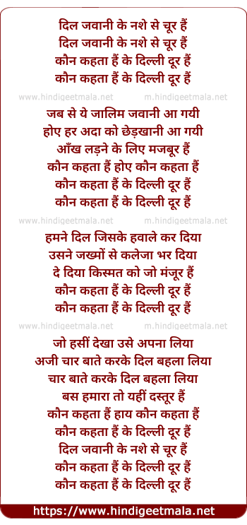 Lyrics of Kaun Kehta Hai Ke Dilli Door Hai - कौन कहते है दिल्ली दूर है