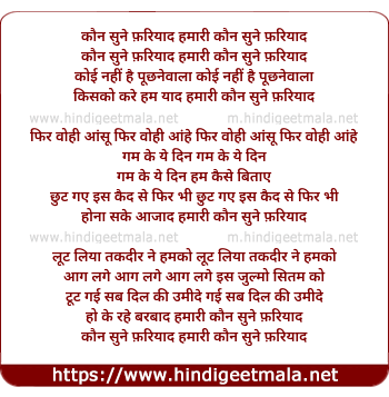 Lyrics of Kaun Sune Fariyad Hamari - कौन सुने फ़रियाद हमारी कौन सुने फ़रियाद