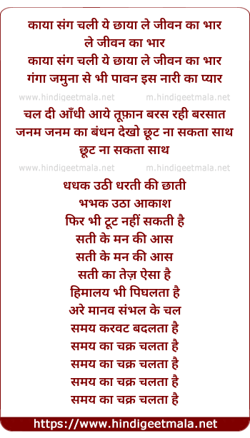 Lyrics of Kaya Sang Chali Ye Chhaya - काया संग चली ये छाया