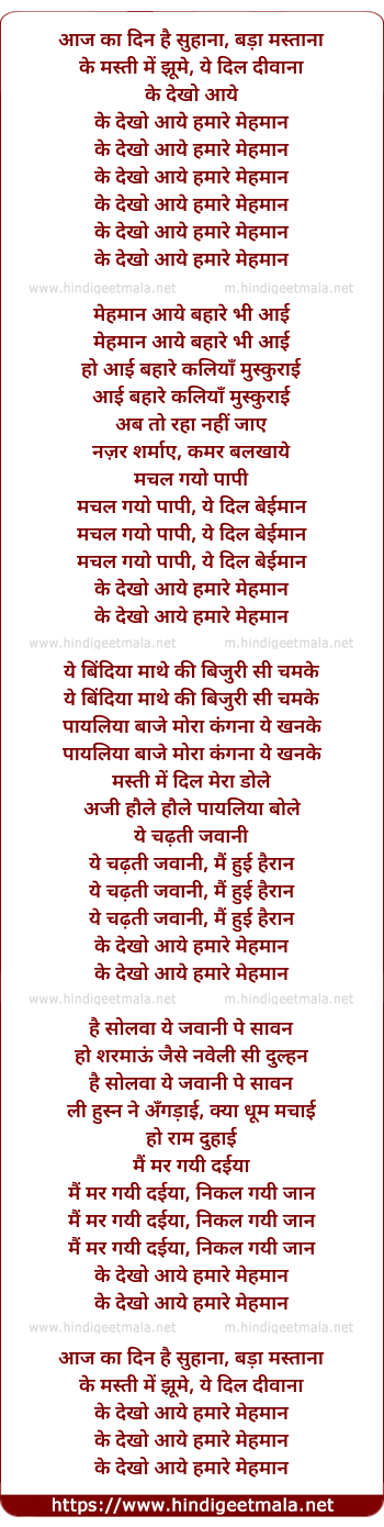 Lyrics of Ke Dekho Aaye Humare Mehman - के देखो आये हमारे मेहमान