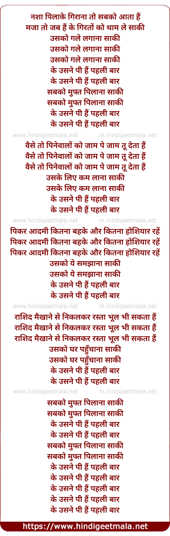 Lyrics of Ke Usane Pee Hai Pehalee Baar - नशा पिलाके गिराना तो सबको आता हैं