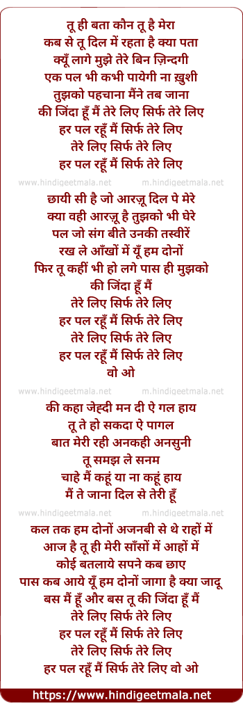 Lyrics of Ke Zinda Hu Mai Tere Liye - के जिंदा हूँ मैं तेरे लिए