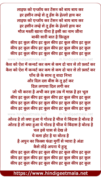 Poetic Translation - Lyrics of Keep It Cool - कीप इट कूल