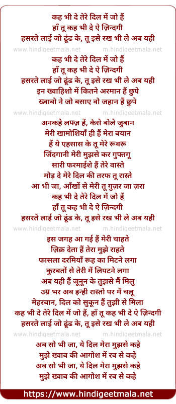 keh bhi de tere dil me jo hai, ha tu keh bhi de ae zindagi
