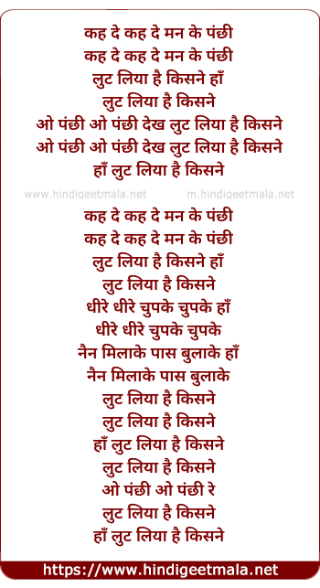 Lyrics of Keh De Mann Ke Panchi - कह दे मन के पंछी