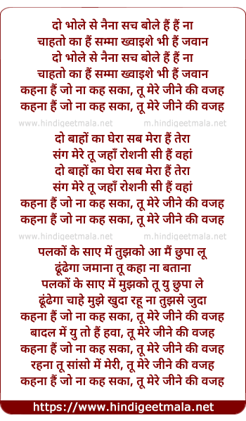kehna hai jo na keh saka, tu mere jine ki wajah