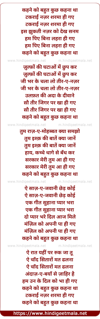 Lyrics of Kehne Ko Bahut Kuch Kehna Tha - कहने को बहुत कुछ कहना था