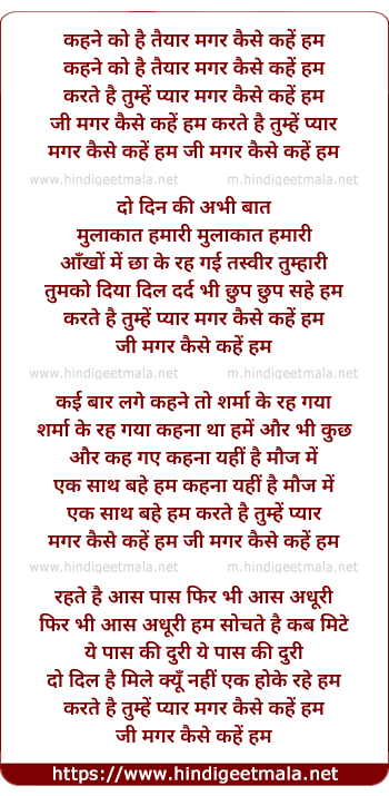 Lyrics of Kehne Ko Hai Taiyyar Magar Kaise Kahe - कहने को है तैयार मगर कैसे कहें