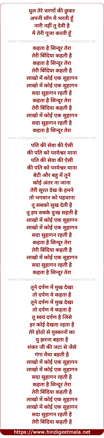 Lyrics of Kehta Hai Sindoor Tera - कहता है सिन्दूर तेरा