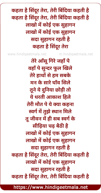 kahta hai sindur tera, teri bindiya kahti hai