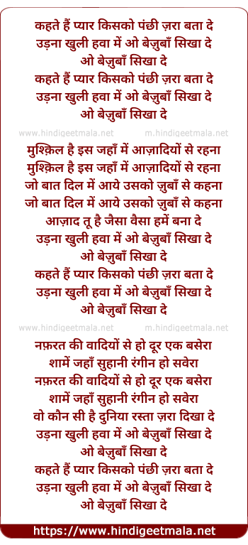 Lyrics of Kehte Hain Pyar Kisko - कहते हैं प्यार किसको