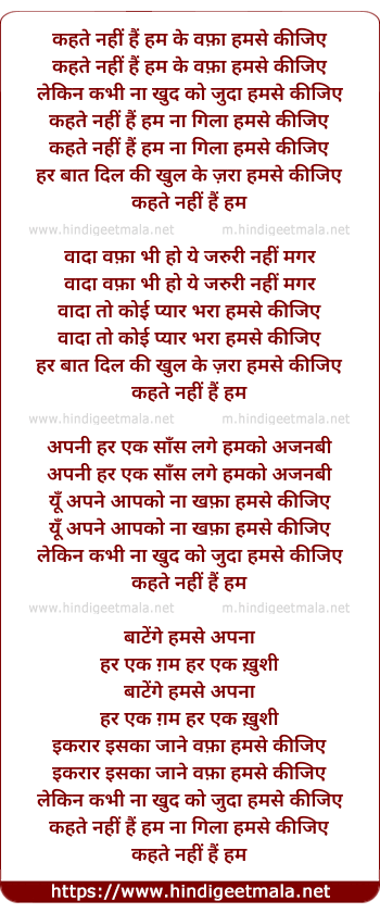 Lyrics of Kehte Nahi Hai Hum - कहते नहीं हैं हम के वफ़ा हमसे कीजिए