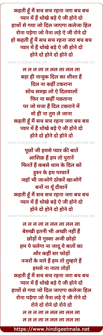Lyrics of Kehti Hoon Main Sach - कहती हूँ मैं सच