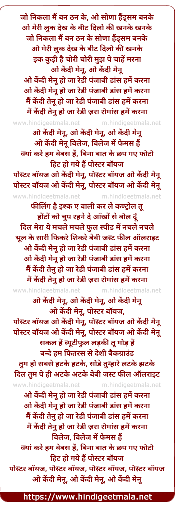 Lyrics of Kendi Menoo - केंदी मेनू