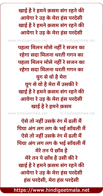 hans paradesi, mera hans paradesi