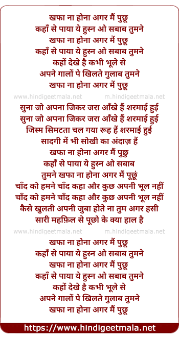 Lyrics of Khafa Na Hona Agar Mai Punchhu - खफा ना होना अगर मैं पुछू
