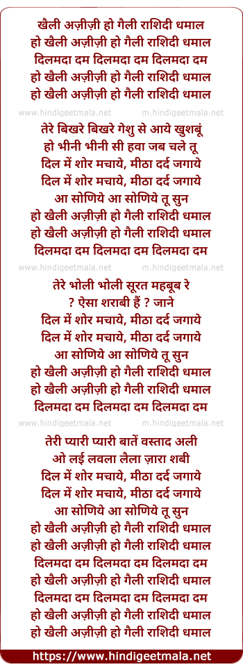 Lyrics of Khaili Azizi - खैली अज़ीज़ी हो गैली राशिदी धमाल
