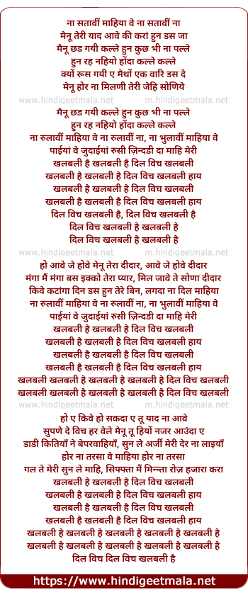 Lyrics of Khalbali (Punjabi) - ना सतावीं माहिया वे ना सतावीं ना