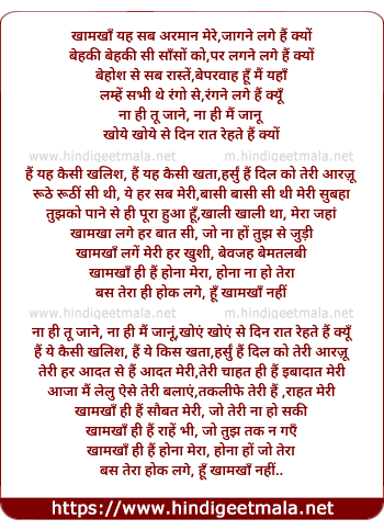 Lyrics of Khamakha Yun Hi - खामखा यूँ ही