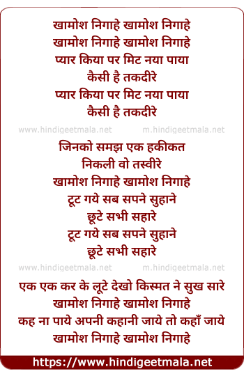Lyrics of Khamosh Nigahen - 3 - खामोश निगाहे