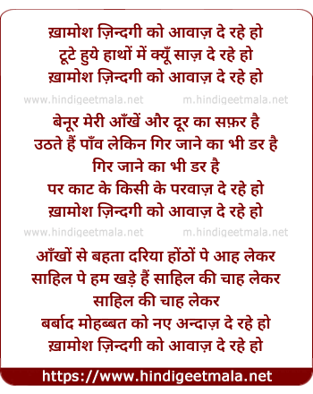 Lyrics of Khamosh Zindagi Ko Aawaaz De Rahe Ho - ख़ामोश ज़िन्दगी को आवाज़ दे रहे हो