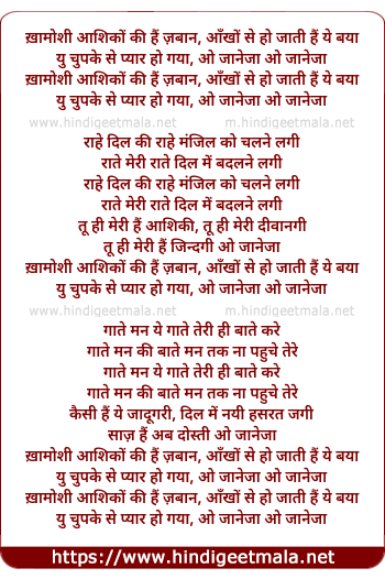 Lyrics of Khamoshi Aashiqo Ki Hai Zaban (Version 2) - ख़ामोशी आशिकों की हैं ज़बान, आँखों से हो जाती हैं ये बया