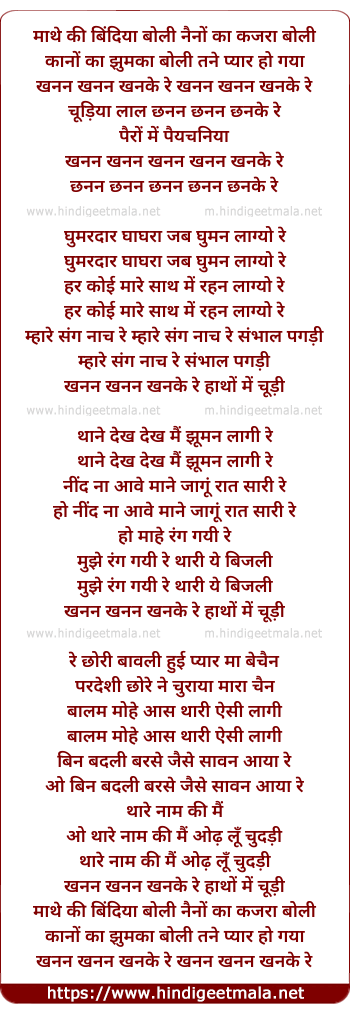 Lyrics of Khanan Khanan Khanke Re - खनन खनन खनके रे