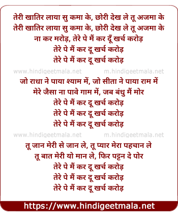 Lyrics of Kharch Karod (2) - तेरी खातिर लाया सु कमा के, छोरी देख ले तू अजमा के
