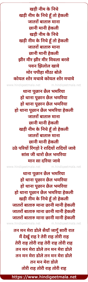 Lyrics of Khari Neem Ke Neeche - कड़ी नीम के निचे हूँ तोहे गली