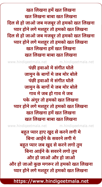 Lyrics of Khat Likhna Humme Khat Likhna - खत लिखना हमें खत लिखना