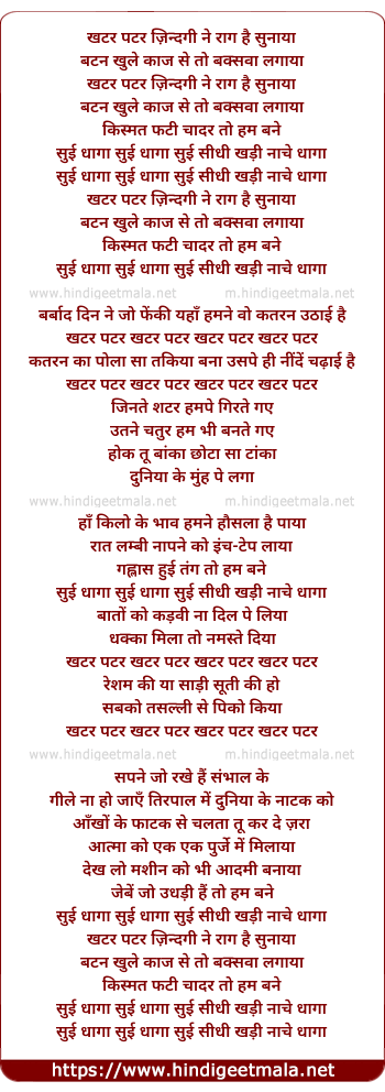 Lyrics of Khatar Patar Jindgi Ne Raag Hai Sunaya - खटर पटर जिन्दगी ने राग है सुनाया