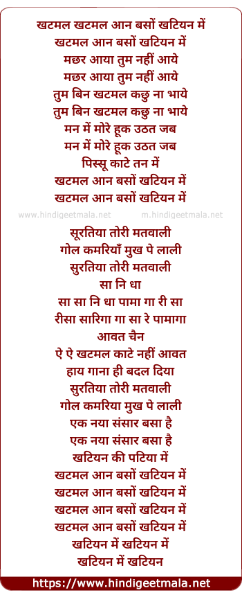 Lyrics of Khatmal Aan Baso Khatiyan Me - खटमल आन बसों खटियन में