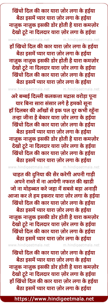 Lyrics of Kheencho Dil Ki Car - खिंचो दिल की कार