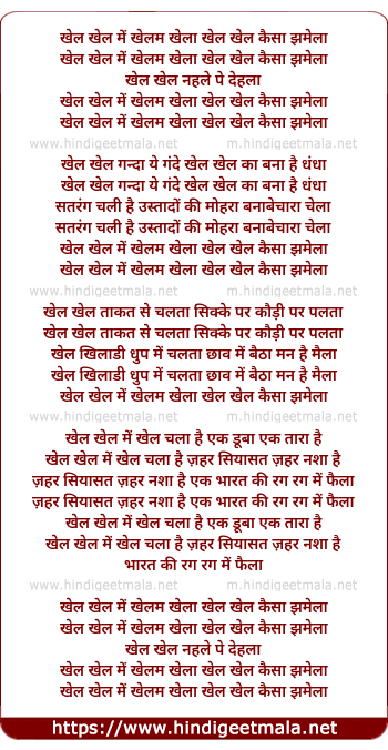 Lyrics of Khel Khel Me Khelam Khela - खेल खेल में खेलम खेला