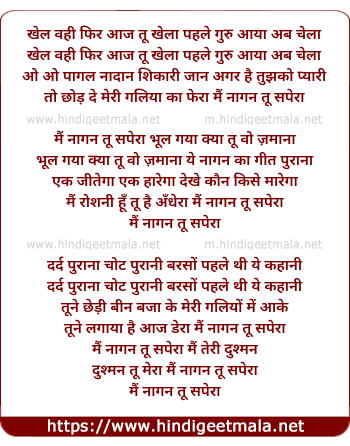 Lyrics of Khel Wahi Phir Aaj Tu Khela - खेल वही फिर आज तू खेला