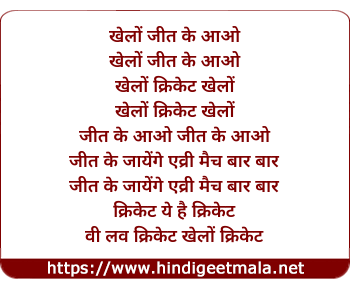 Lyrics of Khelo Cricket Khelo - खेलों जीत के आओ